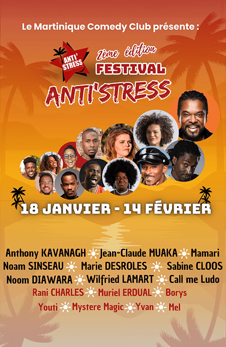 À l'occasion, de ses 10 ans d'existence, le MCC organise la 2e édition de son Festival Anti’Stress, un festival d'humour qui se déroulera du 18 janvier au 14 février 2025. Nous souhaitons, avec ce Festival, promouvoir les humoristes locaux en les associant à des humoristes ... Lire plus >>